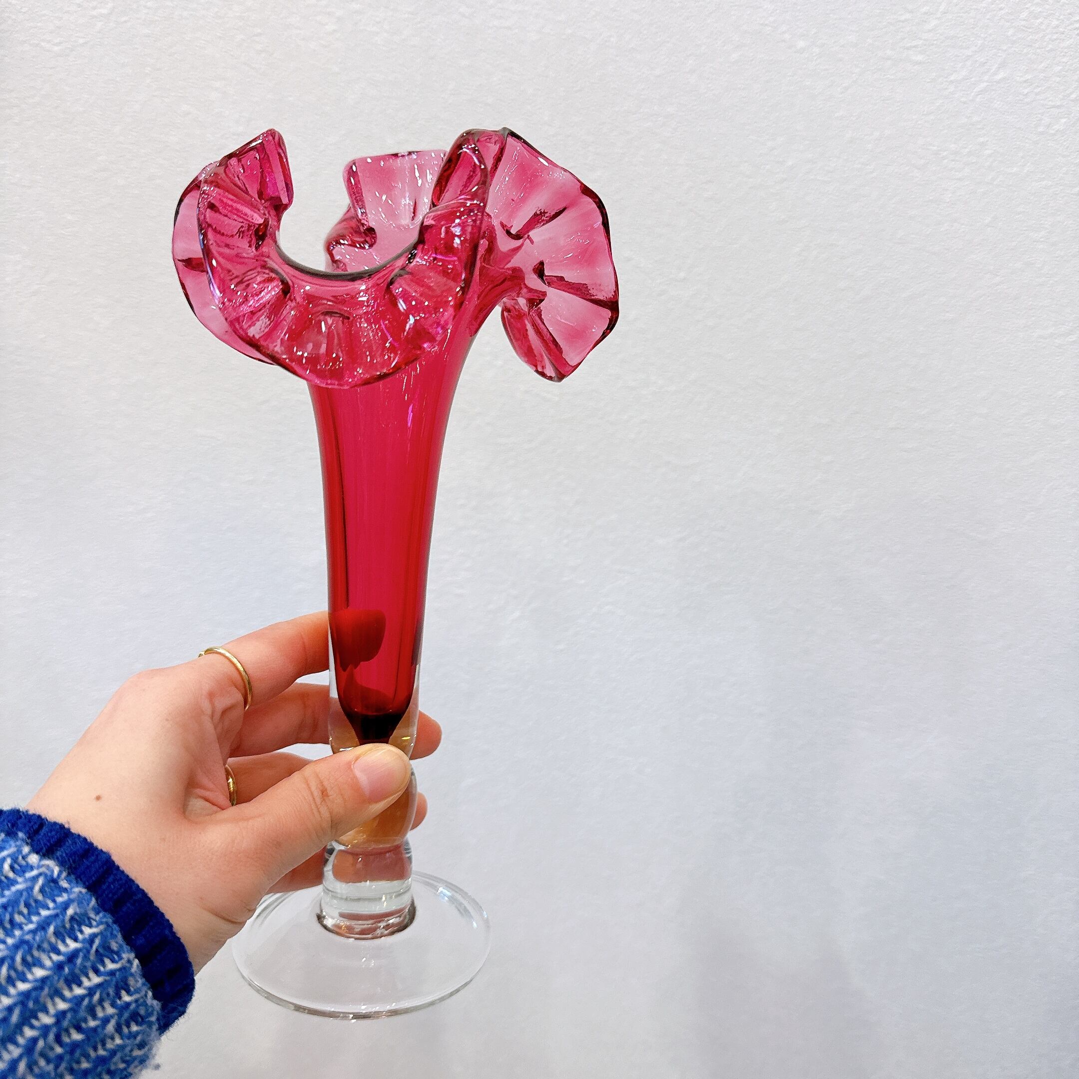 pink frill glass vase