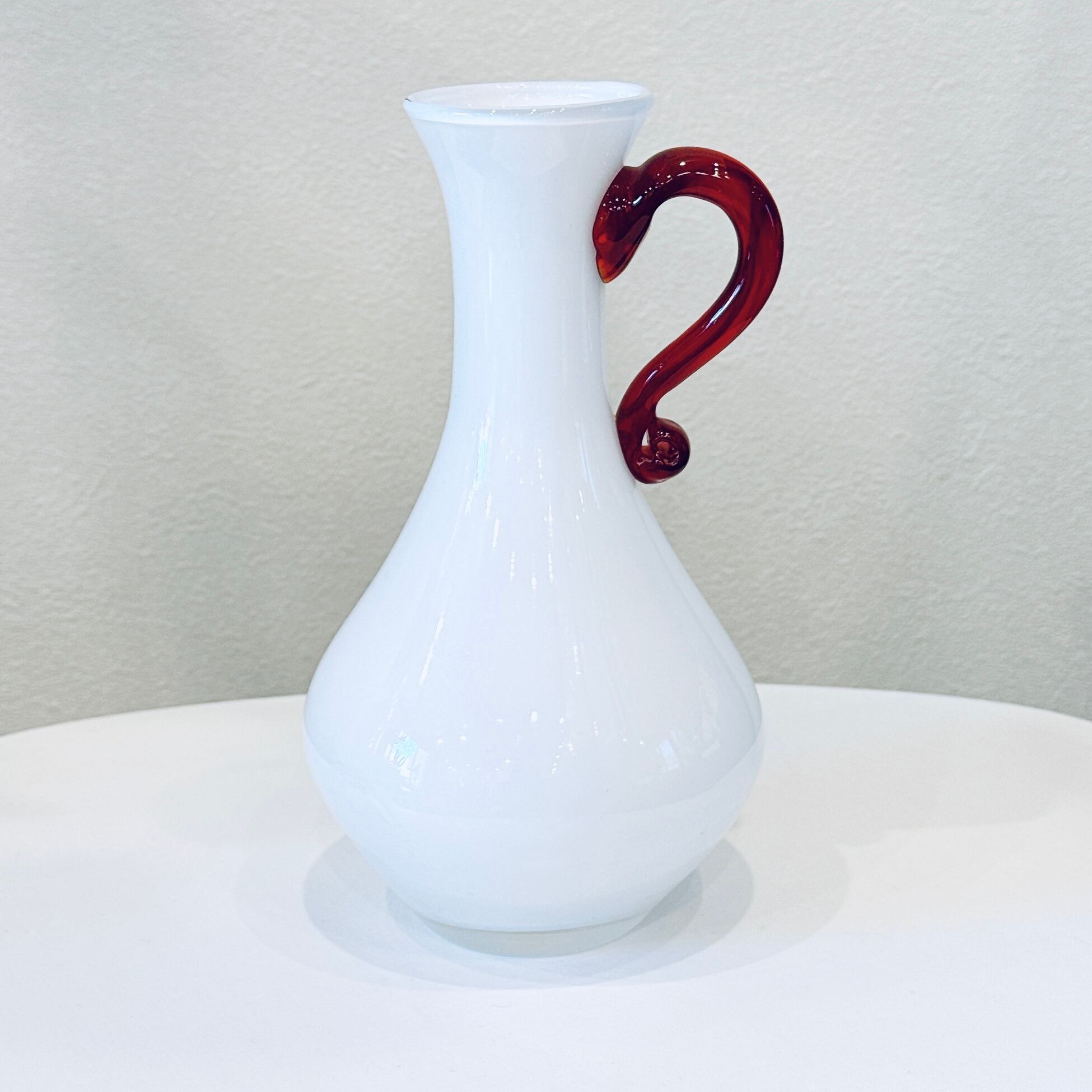赤い取手が可愛い、昭和のレトロなヴィンテージフラワーベースです。1点ものになります。