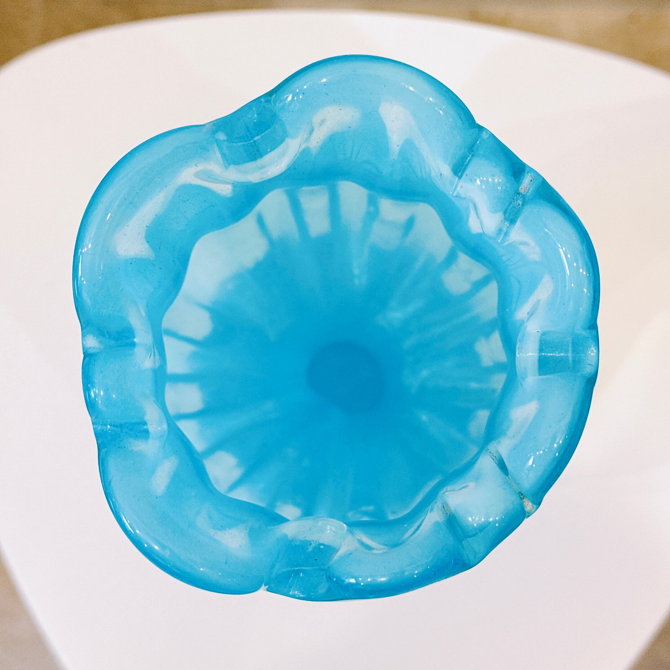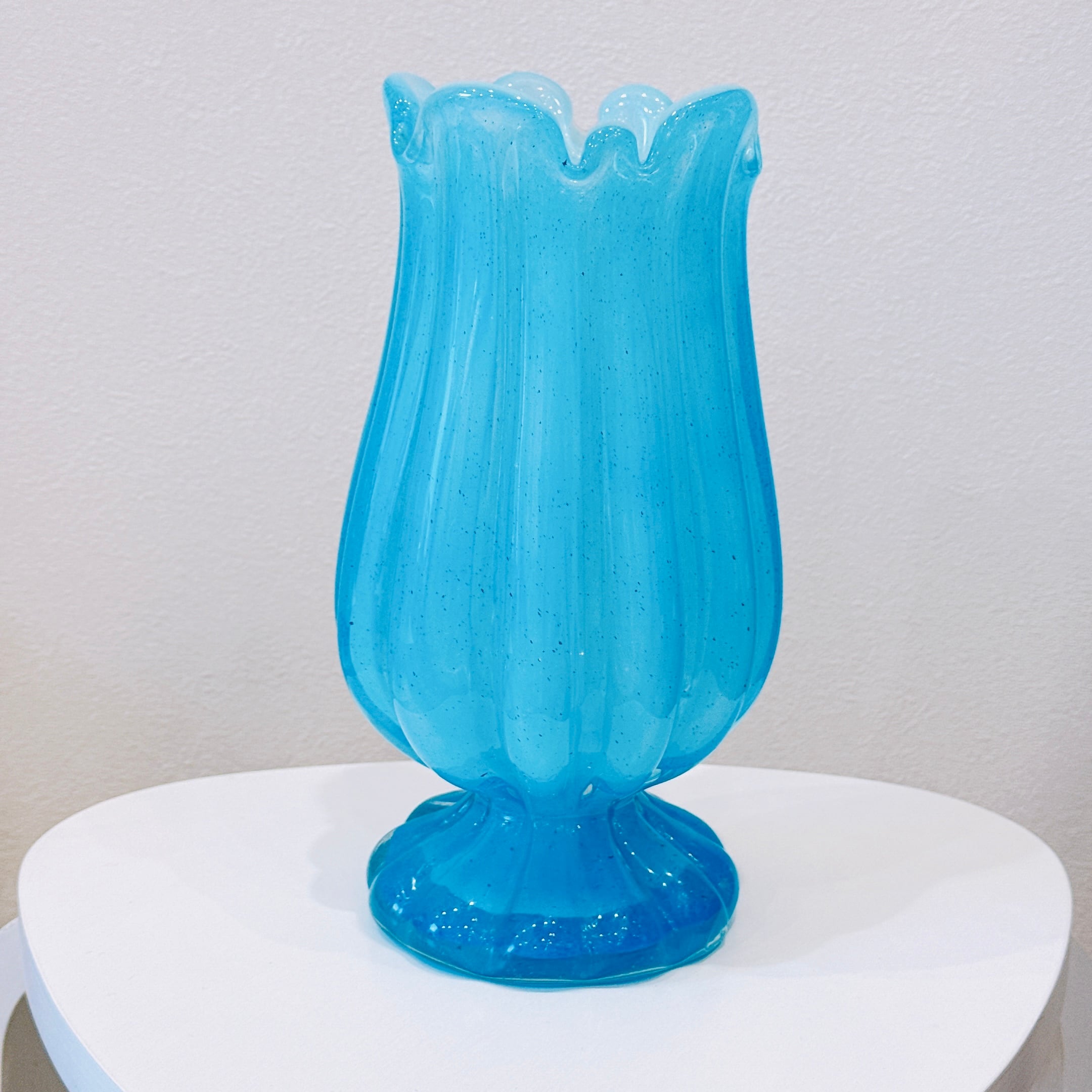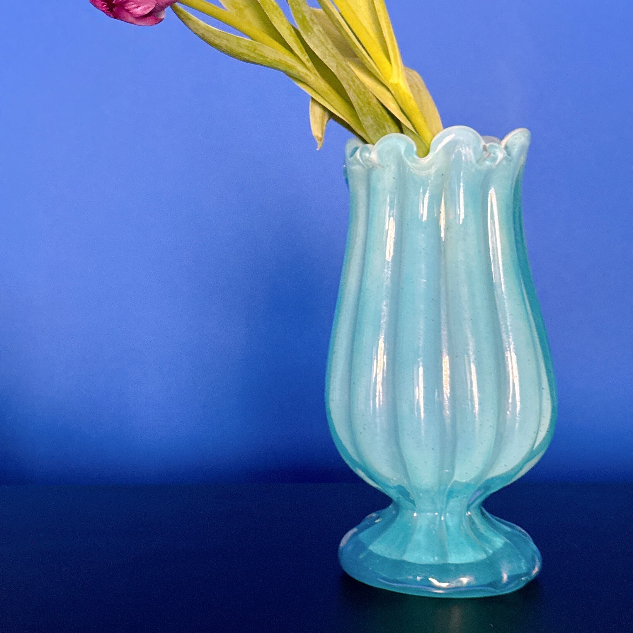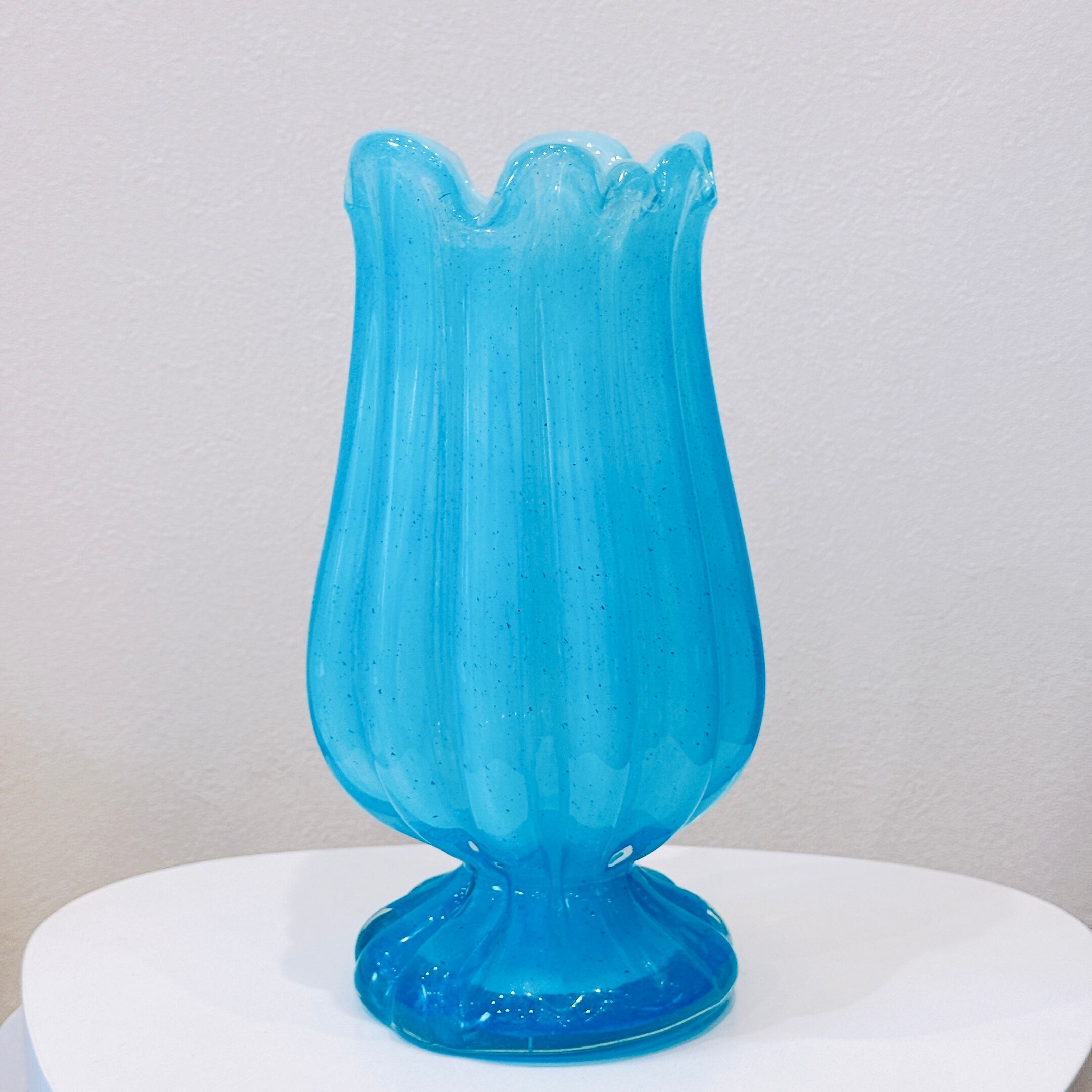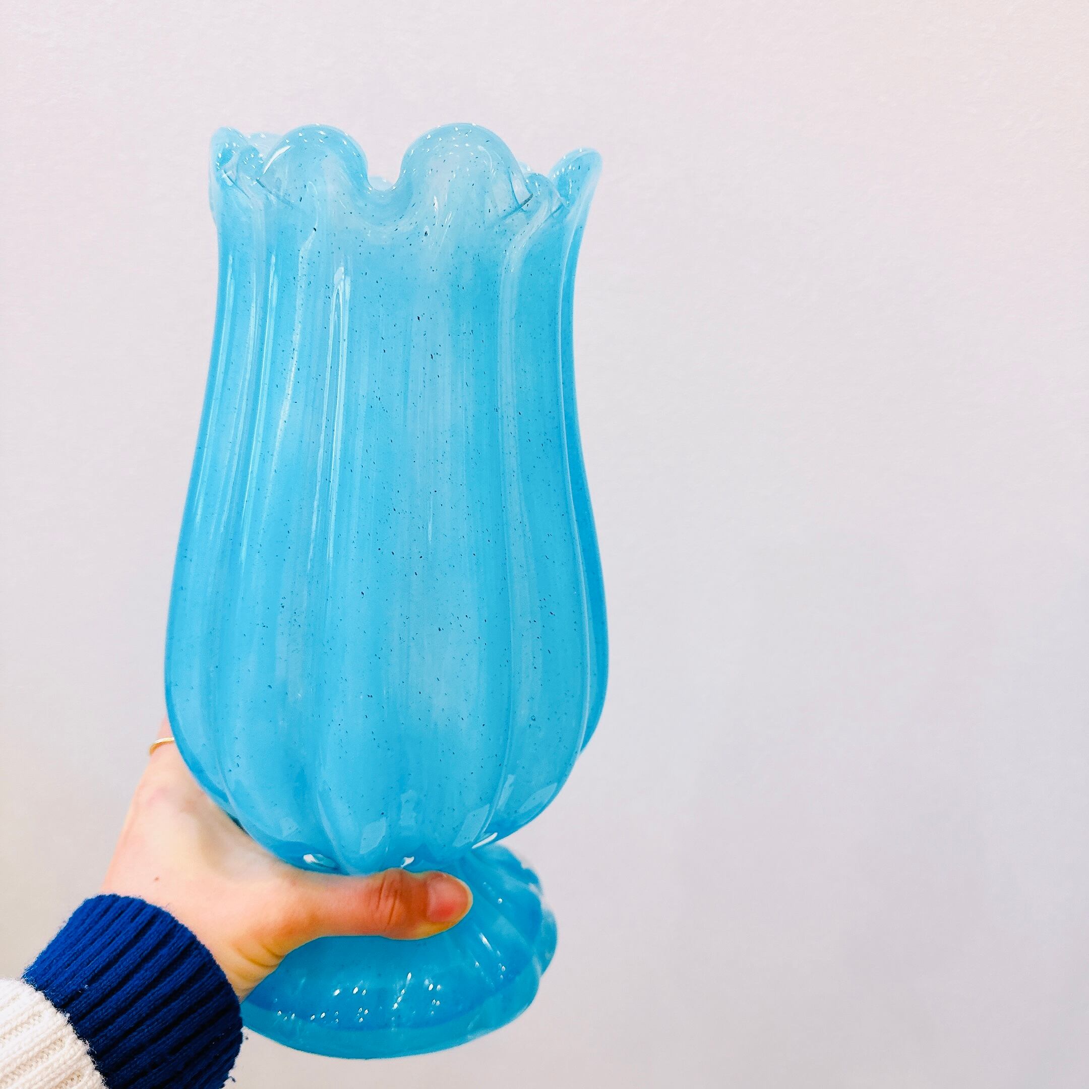 チューリップみたいな形が可愛い、ガラス製のヴィンテージフラワーベースです。1点ものになります。